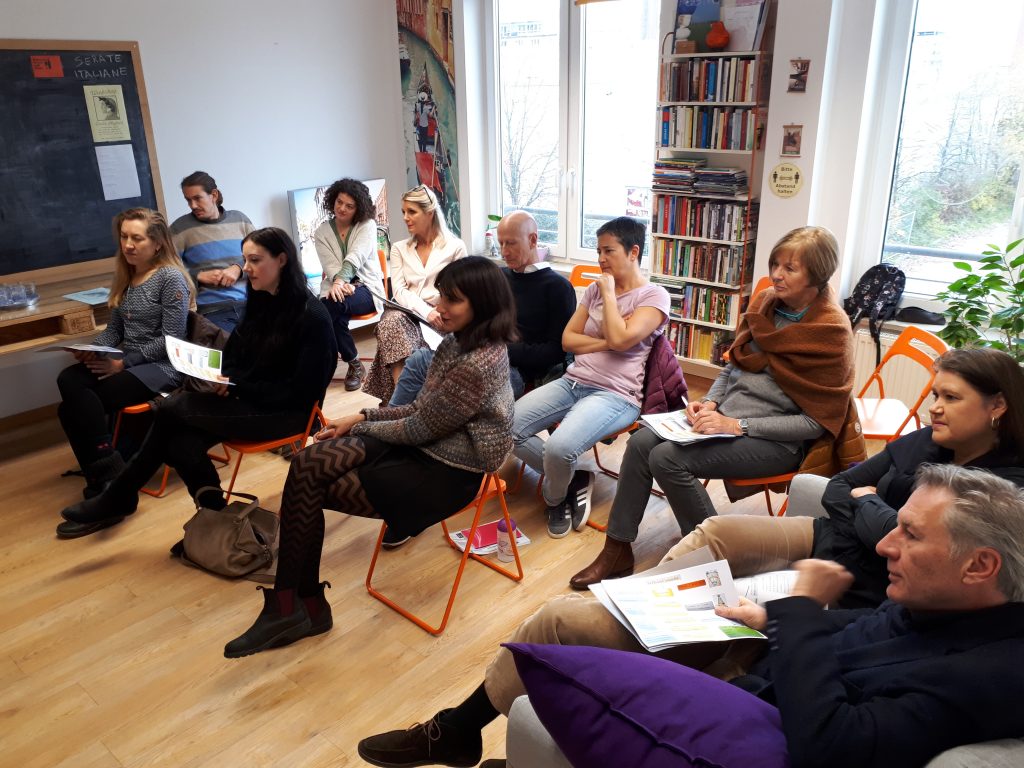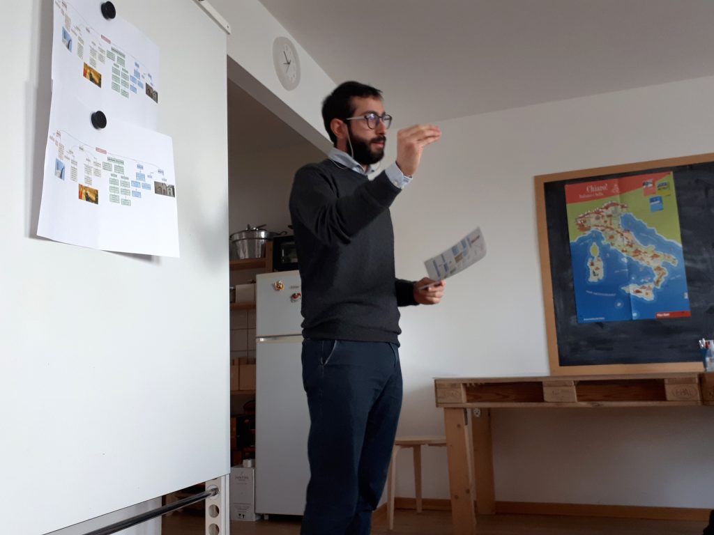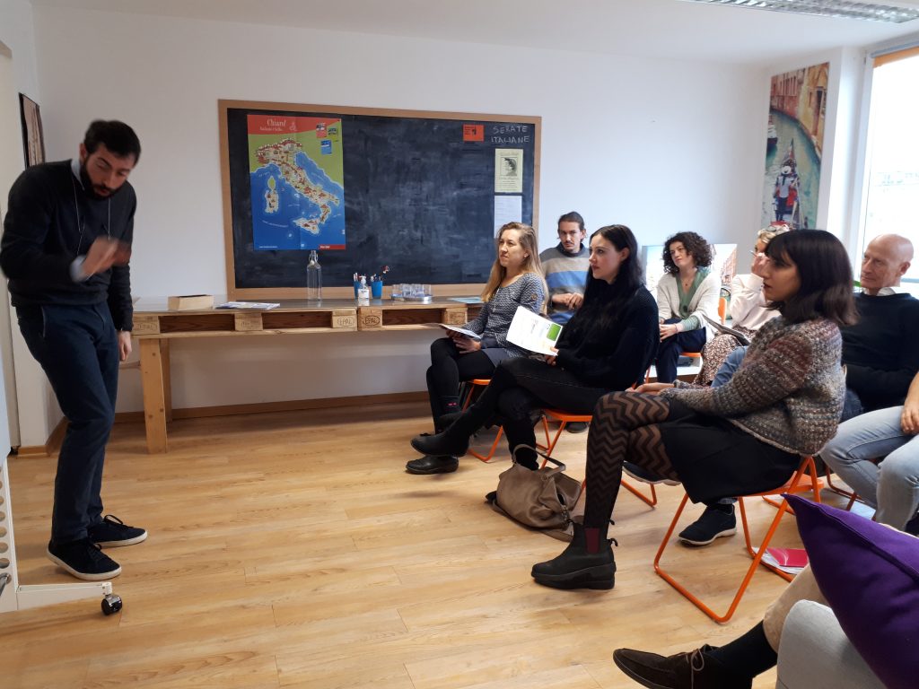Roberto hat uns geholfen, in die Welt von Dante einzutauchen: Zuerst hat er uns über Dantes Leben berichtet. Im Anschluss haben wir zusammen die ersten Verse der Göttlichen Komödie gelesen, dann kommentiert und schließlich mit Robertos Hilfe interpretiert. Im Rahmen von Gruppenarbeit konnten sich die Teilnehmer jeweils unmittelbar austauschen und gegenseitig Feedback geben. Gerade ein solcher Austausch und der direkte Vergleich von Informationen sind wichtig für das Gedächtnis, um Neues langfristig zu speichern.
