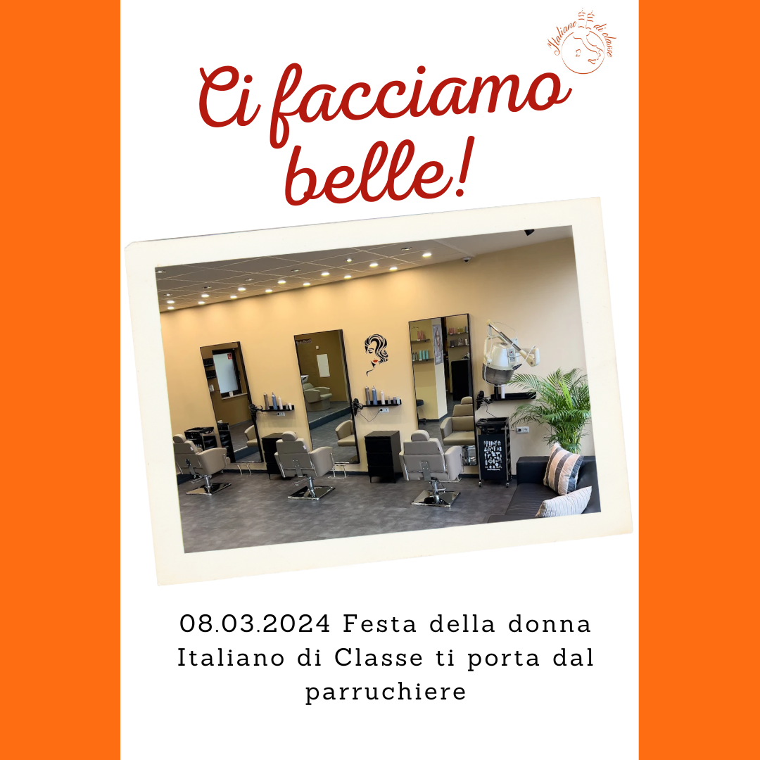 Für den Frauentag hat Italiano di Classe geplant, mit euch allen einen besonderen italienischen Abend zu verbringen. Wo, wenn nicht beim Friseur, um uns schön zu machen? Unser Freund Luciano wird uns für einen lustigen Abend in seinem Salon empfangen, um denen, die interessiert sind, die Haare zu waschen und zu föhnen. Wir werden Italienisch sprechen, Prosecco trinken und ein wenig snacken, selbstverständlich mit italienischer Musik im Hintergrund!